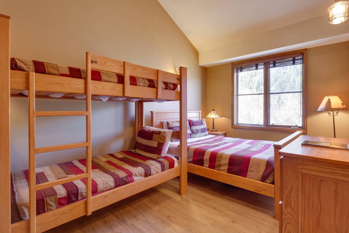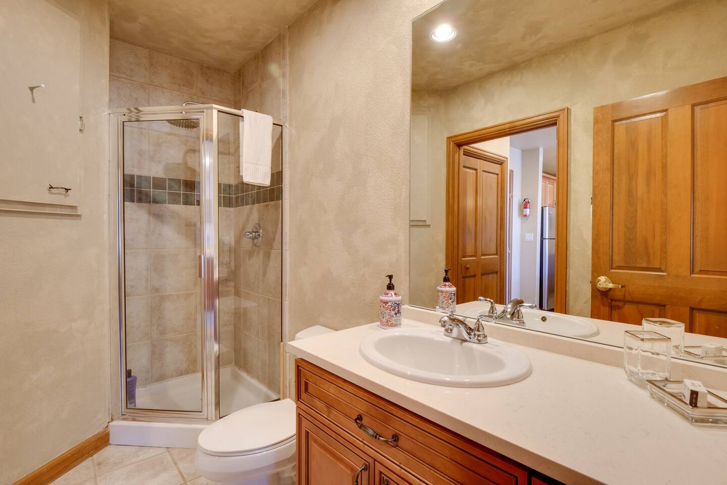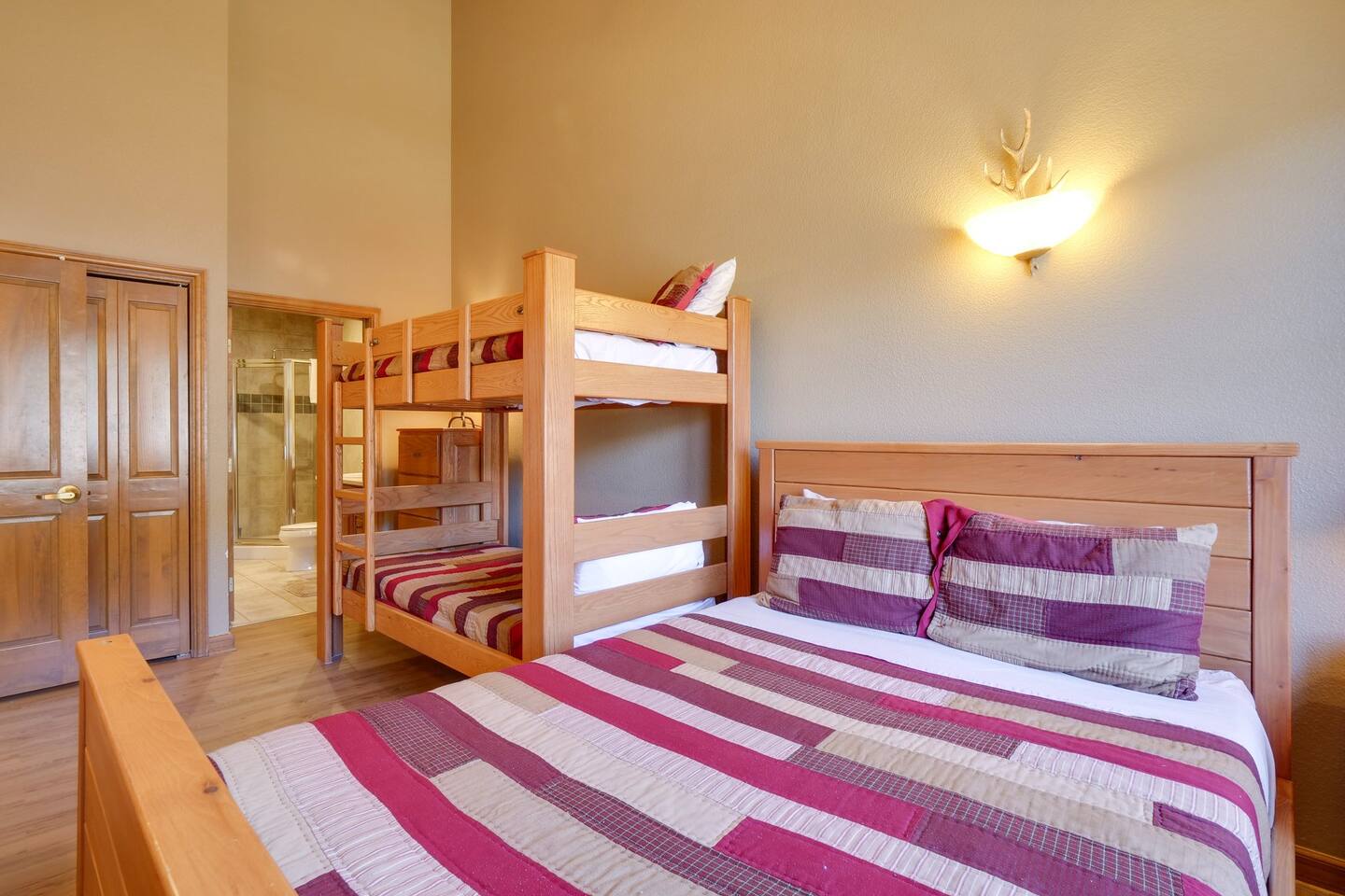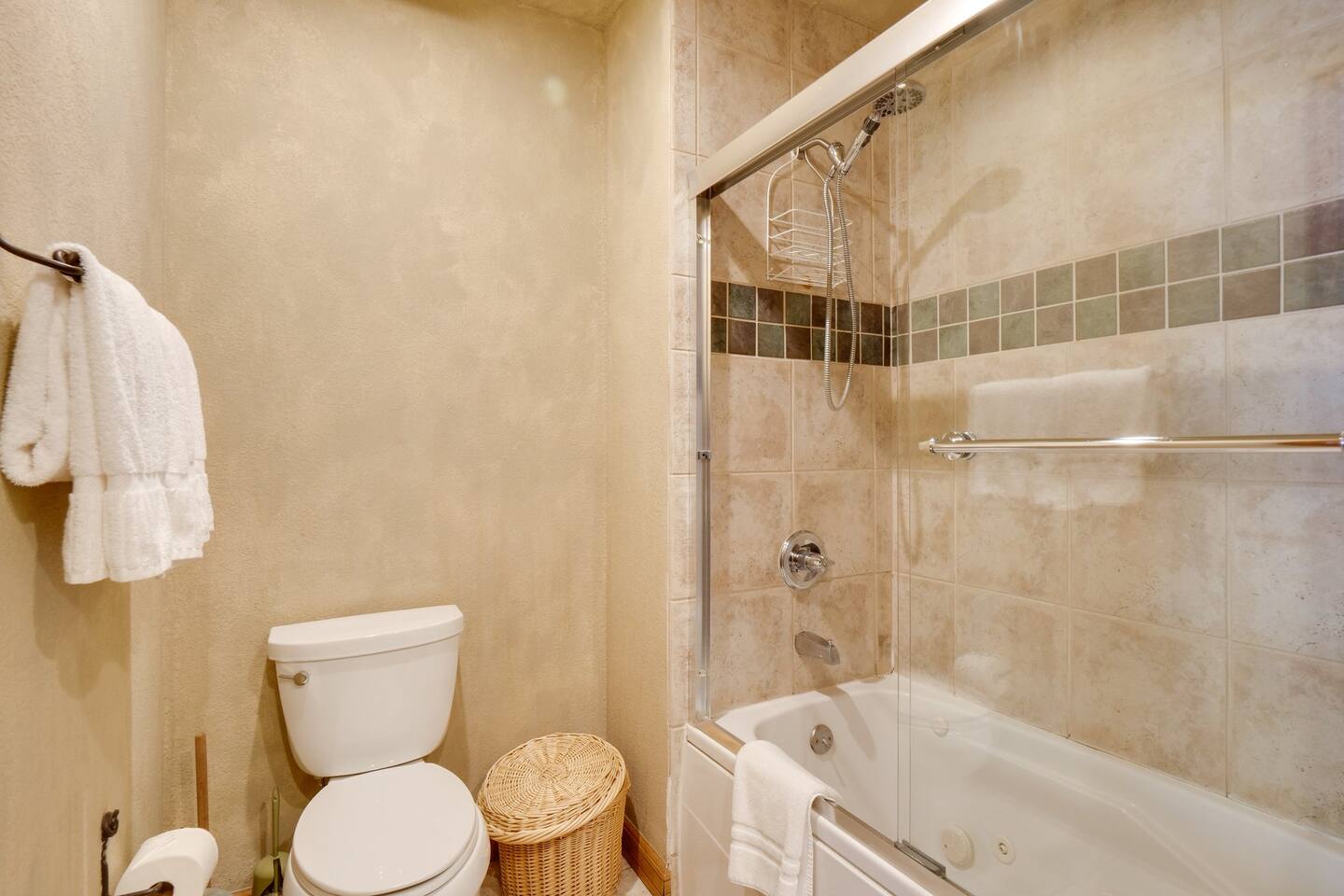 With two bedrooms, including a king bed and a cozy bunk bed and queen bed, guests find plenty of space to relax. Two bathrooms feature showers and hair dryers for added convenience. The condo stays comfortable year-round with heating and air conditioning.