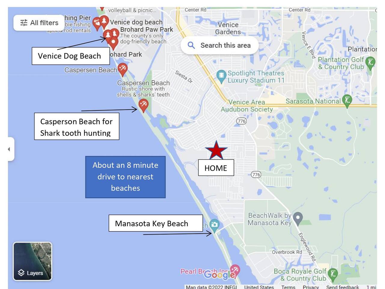 All kitchen/bath essentials, beach equipment & towels are provided. The kitchen is equipped with all of the culinary necessities as well as 2 types of coffee makers (drip and Keurig) We provide starter supplies but do not replenish the entire stay. Shamrock Park is 3 minutes away for basketball, tennis and more, as is the world famous Legacy Bike Trail. Downtown Venice is filled with quaint shops, eateries, and the public beach. If you're a baseball fan the training camp and state for the art facility is short 7 miles jaunt. For you pets, the back yard is totally fenced in but it is not a chain link. Very small dogs may get through. * There is ample parking for 2 cars * Permission must be granted first regarding pets. Please provide breed, size and number of pets. $100 per pet flat fee per stay. * A ring door bell records by motion activation. There is also a camera on the front yard/drive way. There are no cameras inside the home.
