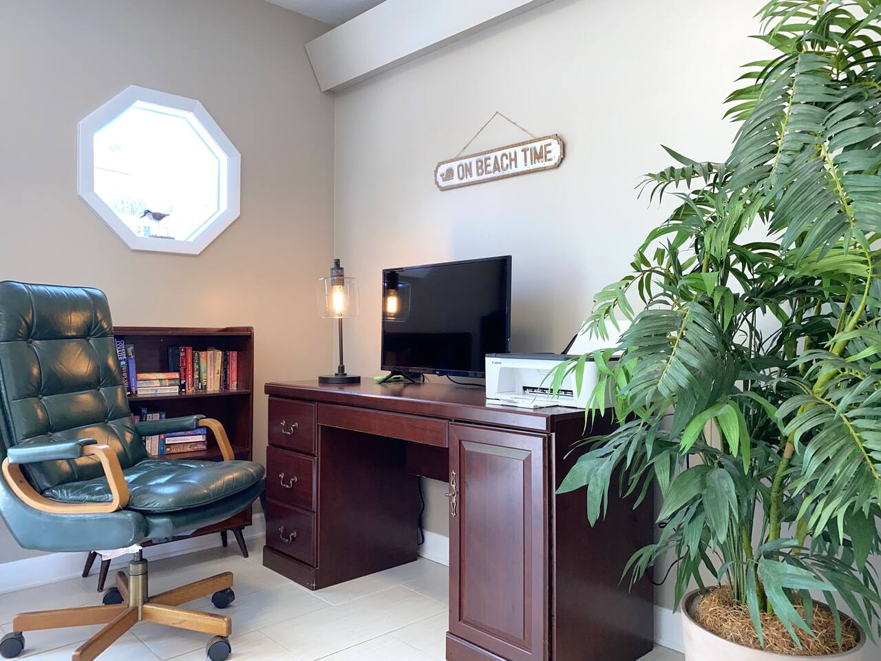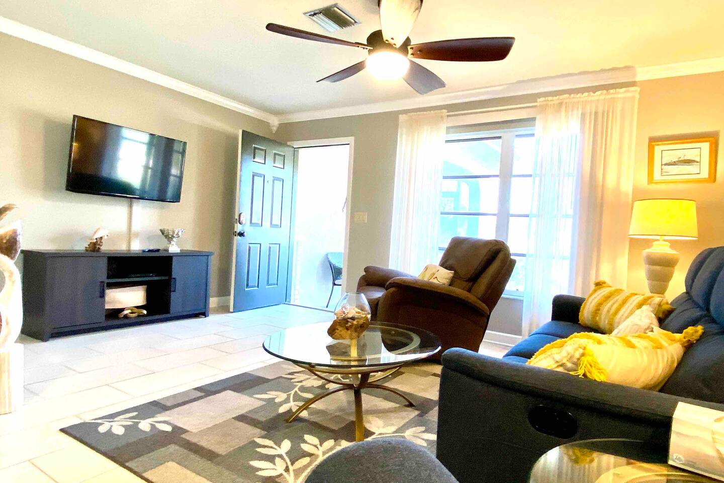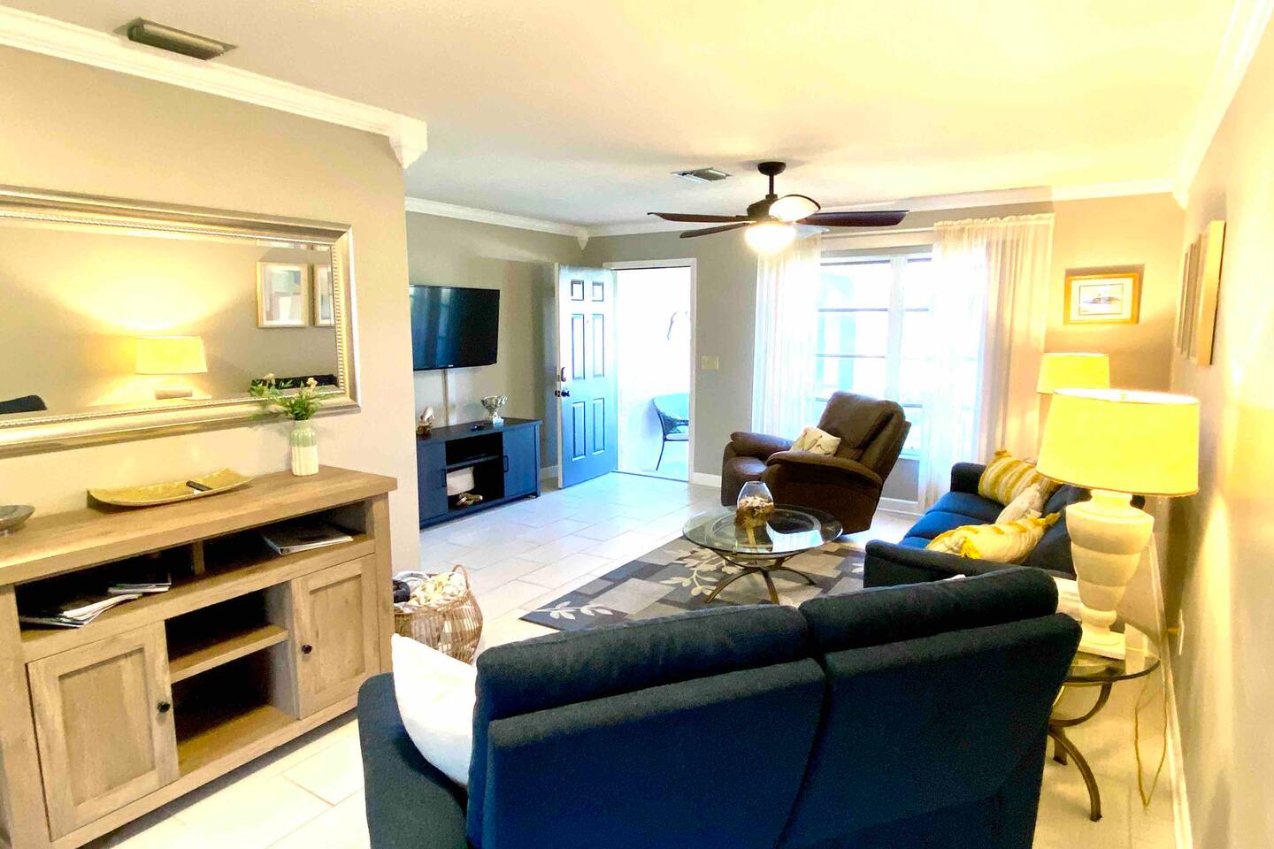Enjoy the safe and quiet neighborhood with access to most everything you need in 8 minutes. Just minutes to the beach, groceries, restaurants, parks and walking trails. Take a dip in the pool, (not heated) sip your margarita and grill in the totally screened-in lanai. If you're combining work and pleasure there is a business center nook with everything you need. A Queen sofa-sleeper is at the opposite end of the nook. It's perfect for kids.