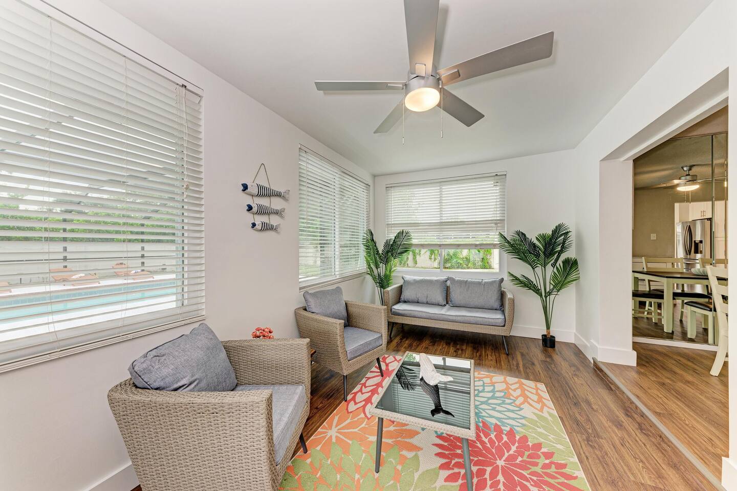 Bring the whole family to this unforgettable vacation experience. Beautifully renovated home only a few minutes away from the Siesta Key beach, and downtown Sarasota. This quiet resort-style home is the perfect blend of vintage charm and modern luxury. This property is dog friendly, however, if you plan to bring dog over 20lb or more than one dog, explicit owner's permission is required before booking.